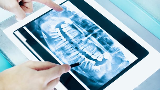 レントゲン画像をもとに歯の根や歯肉の中の状態をチェックし、むし歯がないかどうか細かく検査します。
